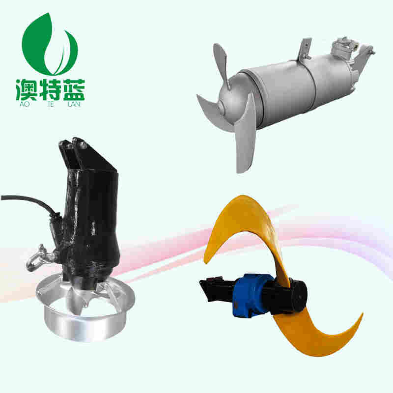澳特蓝潜水低速推流器用途:低速潜水推进器系列搅拌机适用于工业和城市污水处理厂曝气池和厌氧池,其产生低切向流的强力水流,可用于池中水循环及硝化、脱氮和除磷阶段创建水流等。潜水搅拌机的选型是一项比较复杂的工作,选型方案的正确与否直接影响到设备的正常使用,作为选型的原则就是要让搅拌机在适合的容积里发挥充分的搅拌功能,这个标准一般可用流速来确定。根据污水处理厂的不同工艺要求,搅拌机选型的流速应保证在0.15~0.3m/s之间,如果低于0.15m/s的流速则达不到推流搅拌的效果,如果过0.3m/s的流速则会影响工艺效果且造成浪费。所以在选型前,首先要确定潜水搅拌机运用在什么场所,如:污水池、污泥池还是生化池;其次是介质参数,如:悬浮物含量、温度、PH值等;还有水池的形状,水深甚至安装方式等都将对选型产生影响,同时还应考虑到节能因素,因为这将会影响到用户今后的运行成本。搅拌机所需的配套功率是按容积大小、搅拌液体的密度和搅拌深度而确定的,根据具体情况采用一台或多台搅拌机。